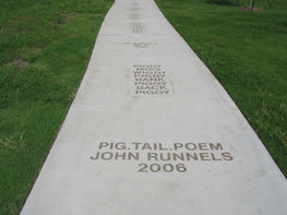 Six original poems are sandblasted into the delineating perimeter and interpenetrating sidewalk system.